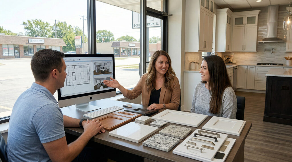 Homeowners in Schiller Park need a clear, actionable plan before removing any old fixtures or cabinets. During your meeting, you will discuss your specific remodeling goals directly with our experienced team. We review practical cabinet materials and styles that complement local architecture, including the classic brick bungalows popular throughout our area. You leave the appointment with a defined direction for your upcoming project.